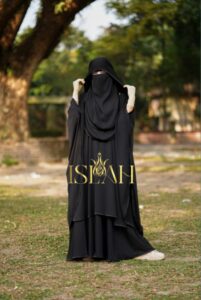 * ২ পার্ট নিকাব স্যামুসিল্ক দিয়ে বর্ডার দেয়া। মাপ ১৮/২৪।